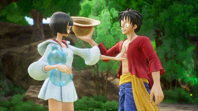 In „One Piece Odyssey“ wird eine komplett neue Geschichte erzählt. Die Strohhut-Piraten landen dabei auf einer mysteriösen Insel und verlieren zumindest teilweise ihre Kräfte. Das alles hängt offenbar mit der neuen Figur Lim zusammen, die speziell für das Spiel entworfen wurde. Sie hegt einen Groll gegen Piraten und nimmt Ruffy und Co. deshalb ihre Fähigkeiten weg.