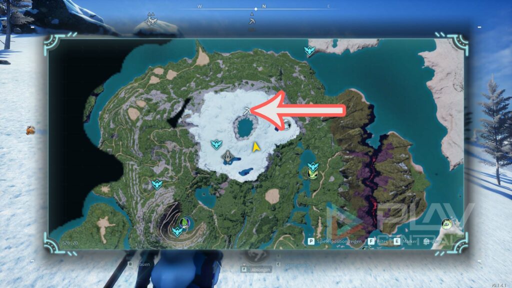 Wenn ihr diesen Spawnpunkt am Turm bereits habt, könnt ihr hier direkt via Schnellreise rüberdüsen. Falls nicht, reitet oder fliegt zunächst an diese Stelle auf unserer Karte.