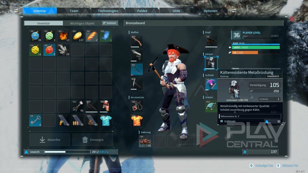 Wir müssen in ein Schneegebiet und beim Fundort ist es sehr kalt. Stellt euch deshalb unbedingt vorher die Kälteresistente Metallrüstung her. Die bietet ausreichend Schutz und hält obendrein die Kälte ab.
