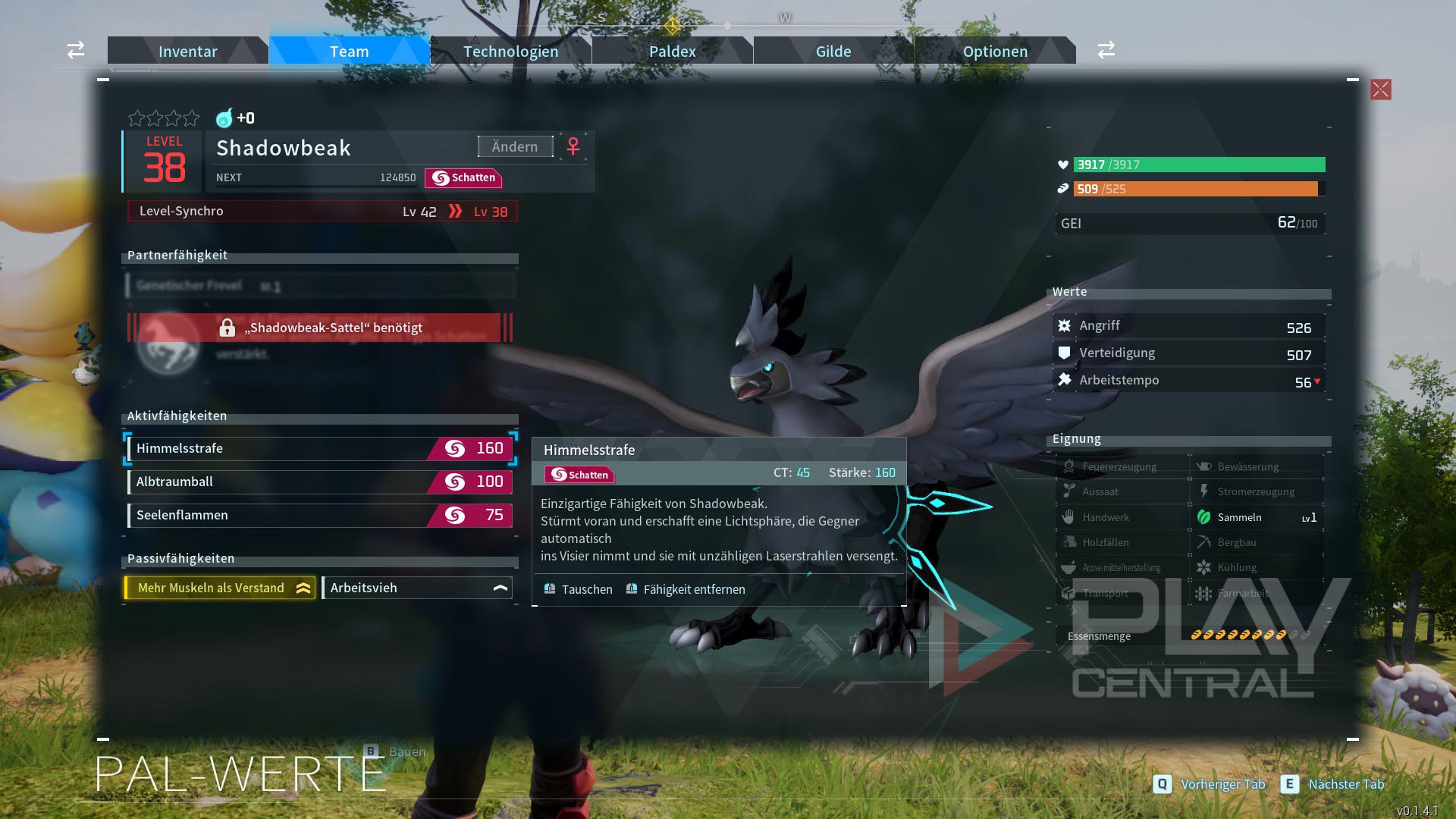 Wenn ihr das Pal jetzt fangt, könnt ihr es schon mal ins Team aufnehmen, auch wenn ihr noch nicht auf Shadowbeak reiten könnt. Es ist auf jeden Fall eine gute Ergänzung fürs Team, da es sehr stark ist!