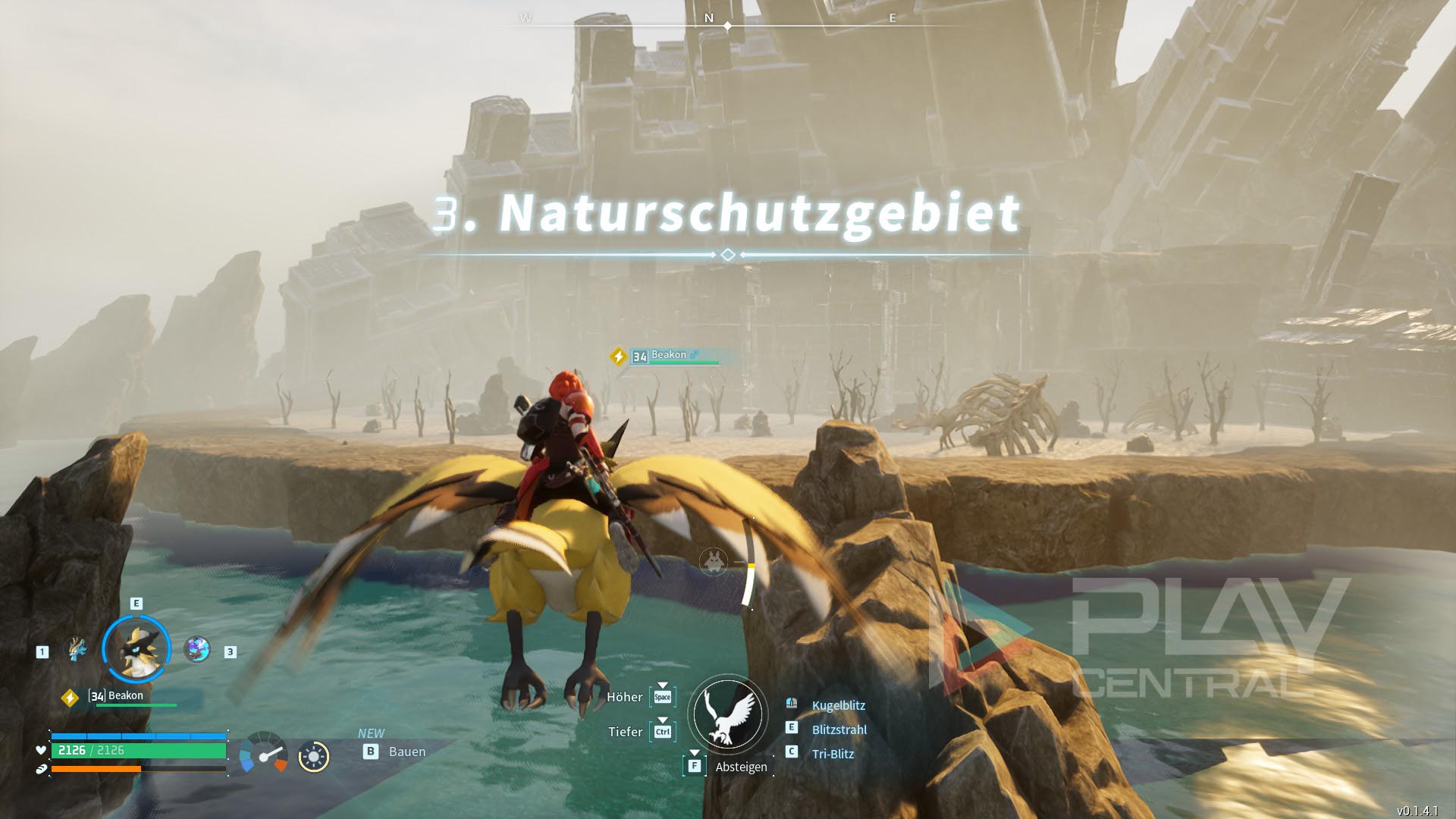 Shadowbeak wird sein gesamtes Arsenal an Fähigkeiten aufwarten. Entscheidet selbst, ob ihr auf eurem Pal reiten möchtet, um mit dem Pal zu kämpfen, oder ob ihr lieber manuell mit dem Einzelschuss-Gewehr oder der Pistole aushelft. Beide Waffnen eignen sich ganz gut für den Kampf – je seltener die Baupläne eurer Waffen sind desto besser.