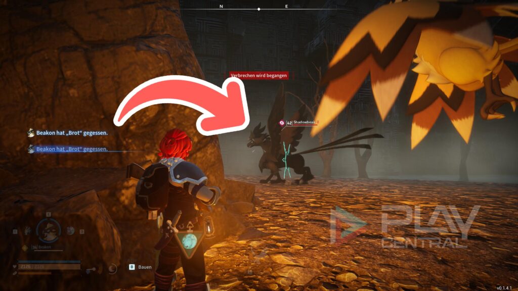 Fliegt einfach ein wenig durch das Gebiet und haltet Ausschau nach einer schwarzen Entität mit Flügeln: das ist Shadow Beak!