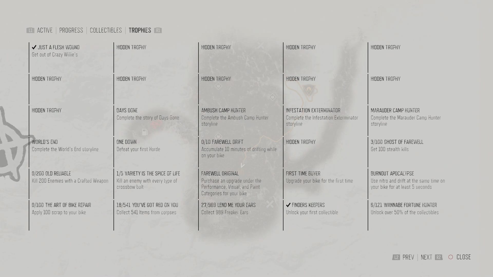 „Days Gone“ machte es bereits vor: Dabei gibt es einige Spiele, die dies schon vorgemacht haben. Ein Beispiel dafür wäre Days Gone. Im Hauptmenü des First-Party-Games konntet ihr den Fortschritt für bestimmte Trophies nachverfolgen. Beispielsweise, wenn es um das Freischalten von Collectibles oder das Ausführen von Stealth Kills ging.
