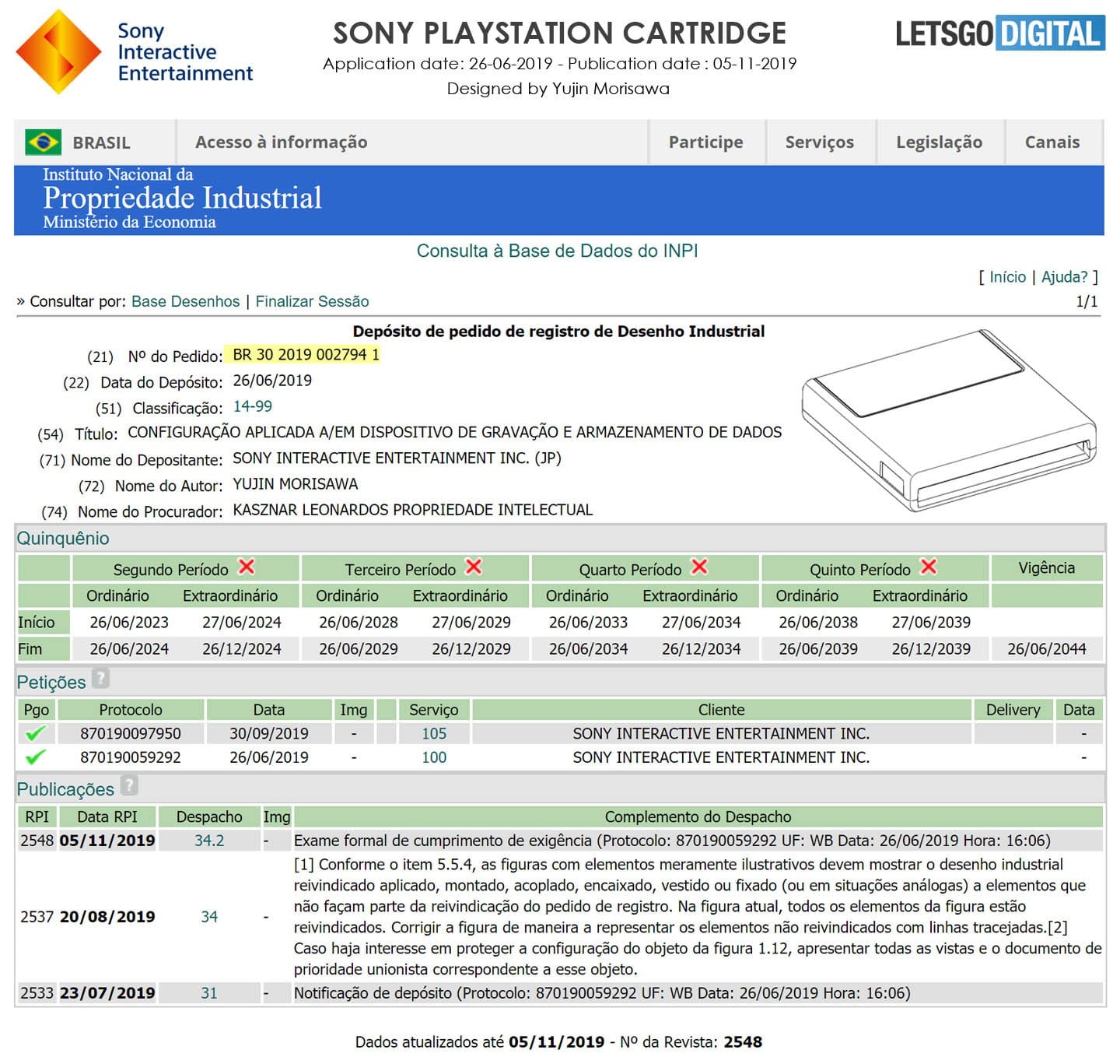 Kommt die PS5 etwa mit Cartridges? Eine Meldung (via LetsGoDigital) versetzt das Netz derzeit in Aufruhr. In Brasilien sind findige Köpfe auf ein neues Patent gestoßen. Sony hat in Brasilien ein Patent angemeldet, das eine PlayStation Cartridge beschreibt. Das Patent für „Datenerfassungs- und Speichergeräte“ wurde am Instituto Nacional da Propriedade Industrial (INPI) eingereicht und am 5. November 2019 veröffentlicht.