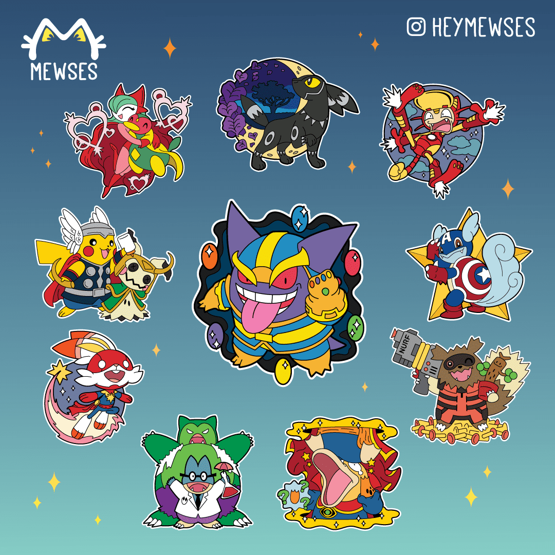 In diesem ersten Bild übernimmt das Elektro-Pokémon Pikachu passenderweise die Rolle von Donnergott Thor. Mimigma, ein Geist-Pokémon, das gewisse Ähnlichkeiten zu Pikachu besitzt, stellt dagegen Adoptivbruder Loki dar. Das dunkle und katzenhafte Nachtara mimt gekonnterweise Black Panther, während Schillok seinen Schild auch in der Rolle von Captain America vorteilhaft nutzen kann. Ob Enton mit seinen Psycho-Kräften ein guter Ersatz für den Magier Doctor Strange wäre, wagen wir mal zu bezweifeln. Diese und weitere Pokémon-Superhelden in spe, die wir hier sehen, müssen sich gegen den Superschurken Gengar zusammenschließen, der die Macht der Infinity Steine ganz wie Vorbild Thanos für sich nutzt.