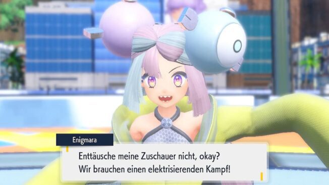 Diesen bestreitet ihr gegen Arenaleiterin Enigmara, die ihr in Fermanca City treffen könnt. Um auf Dem Weg des Champs den nächsten Schritt machen zu können, müsst ihr ihre Elektro-Pokémon besiegen.