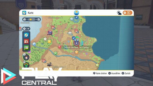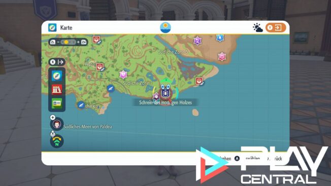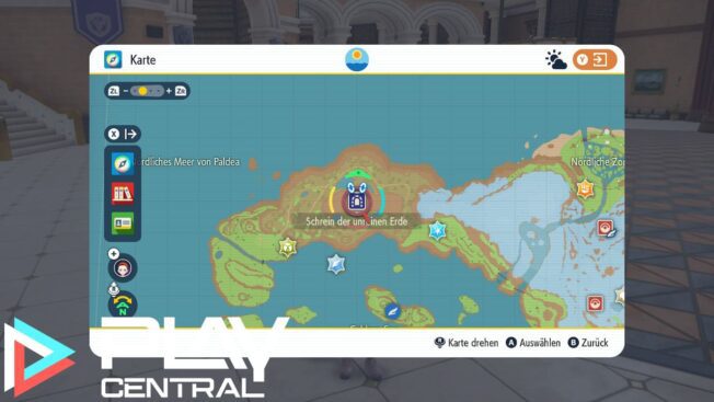 Jetzt fehlen nur noch zwei legendäre Unheil-Pokémon. Das nächste könnt ihr fangen, sobald ihr alle grünen Pfähle herausgezogen habt. Den Schrein der unreinen Erde findet ihr nördlich vom Caldero-See im Nordwesten Paldeas. Hier wartet das Taschenmonster Dinglu (Level 60) auf euch.
