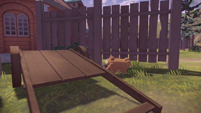 Drei Bidiza sind durch das Eingangstor gehuscht und verstecken sich in Jubeldorf. © Nintendo, The Pokémon Company