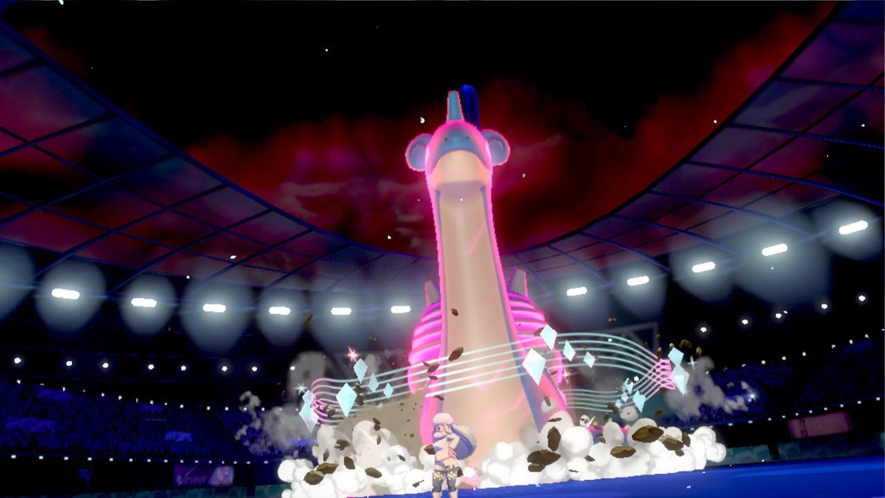 Zuletzt bekommt ihr es mit einem Lapras (Level 42) zu tun, also einem Pokémon vom Typ Wasser und Eis. Die Arenaleiterin wird es natürlich via Gigadynamix riesig werden lassen, also tut ihr dies auch. Bestenfalls mit einem Kämpfer vom Typ Pflanze, Elektro, Kampf oder Gestein, der über entsprechende Attacken verfügt. Meidet Attacken vom Typ Wasser und Eis.