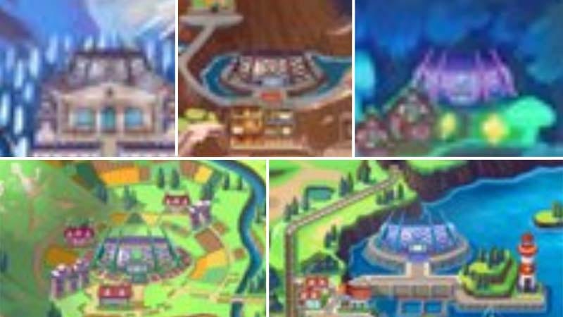 Auf dieser Arena ist ein großes Pflanze-Emblem zu sehen, weshalb anzunehmen ist, dass dies der dort vertretene Typ sein wird. Im Osten der Region ist eine blau eingefärbte Arena zu sehen, die scheinbar den Typ Wasser abbildet. In der südöstlichen Ecke der Schneelandschaft ist eine weitere Arena zu sehen, parallel gegenüber im Westen können die nächsten beiden erblickt werden.