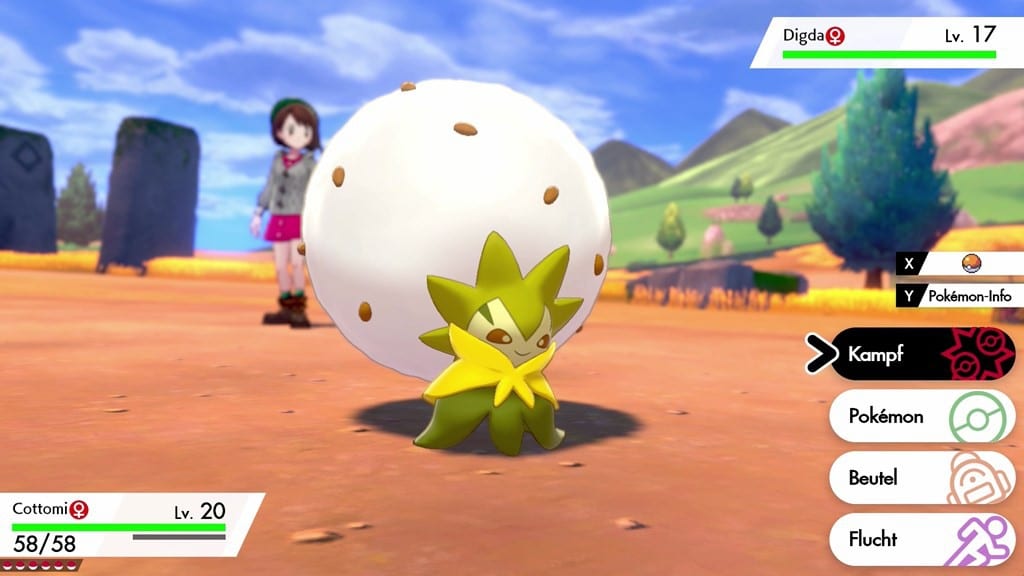Offizielle Beschhreibung: Wenn sich Cottini zu Cottomi entwickelt, wird sein Kopf von einem dichten Wollflaum bedeckt. Dieser Wollflaum wirkt wie ein Polster, das Cottomis Kopf vor Schaden schützt. Die winzigen Samen, die an seinem Wollflaum hängen, sollen für Menschen und Pokémon gleichermaßen nährstoffreich sein. Cottomi verstreut diese Samen in der Region, wodurch die Erde in Galar sehr gehaltvoll wird.
