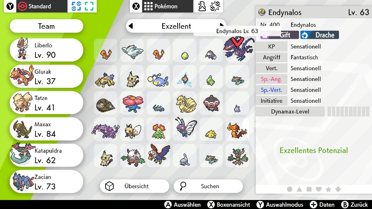 Euer Ziel sollte es sein, ein Pokémon mit mindestens fünf perfekten IVs zu bekommen. Eine gute Ausgangsposition ist es, wenn ihr aus einem Dyna-Raid ein Ditto oder ein anderes Pokémon mit mehreren „sensationellen“ IVs gefangen habt.