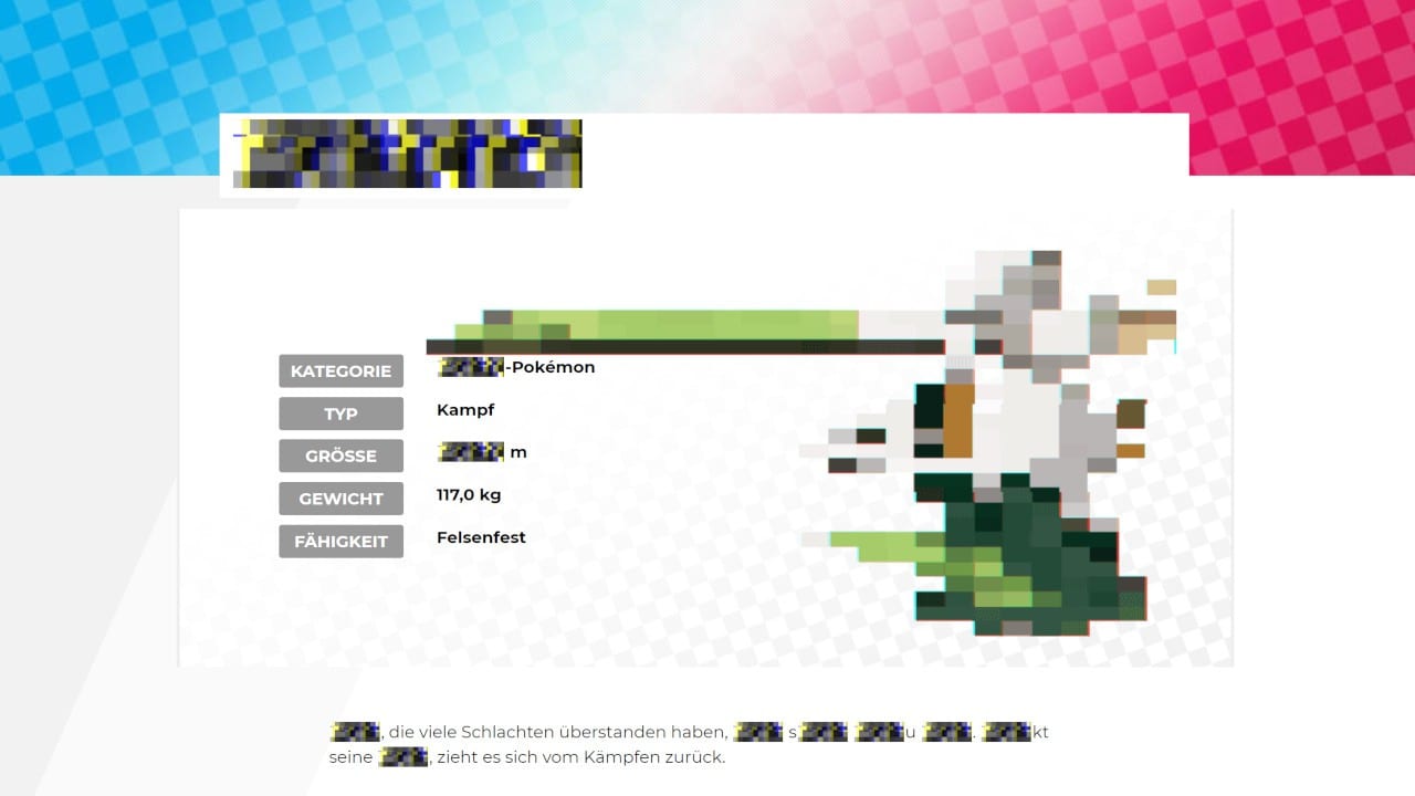 Auf der offiziellen Webseite von The Pokémon Company wird seit Neuestem ein neues Pokémon für Pokémon Schwert und Schild gezeigt. Es wird wie ein Glitch dargestellt, wodurch viele Informationen nicht lesbar sind. Was ist das für ein Pokémon?