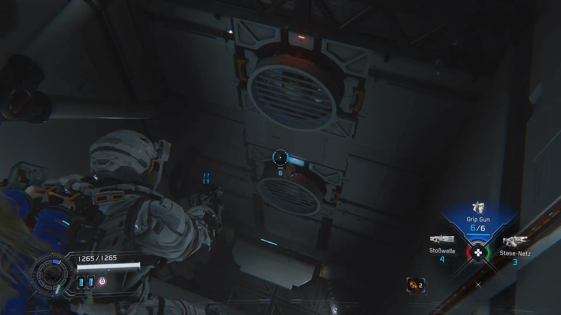 Im Nexus-Turm. Nach der Rettungsluke auf einer Kabelbox über einer Bodenlücke.