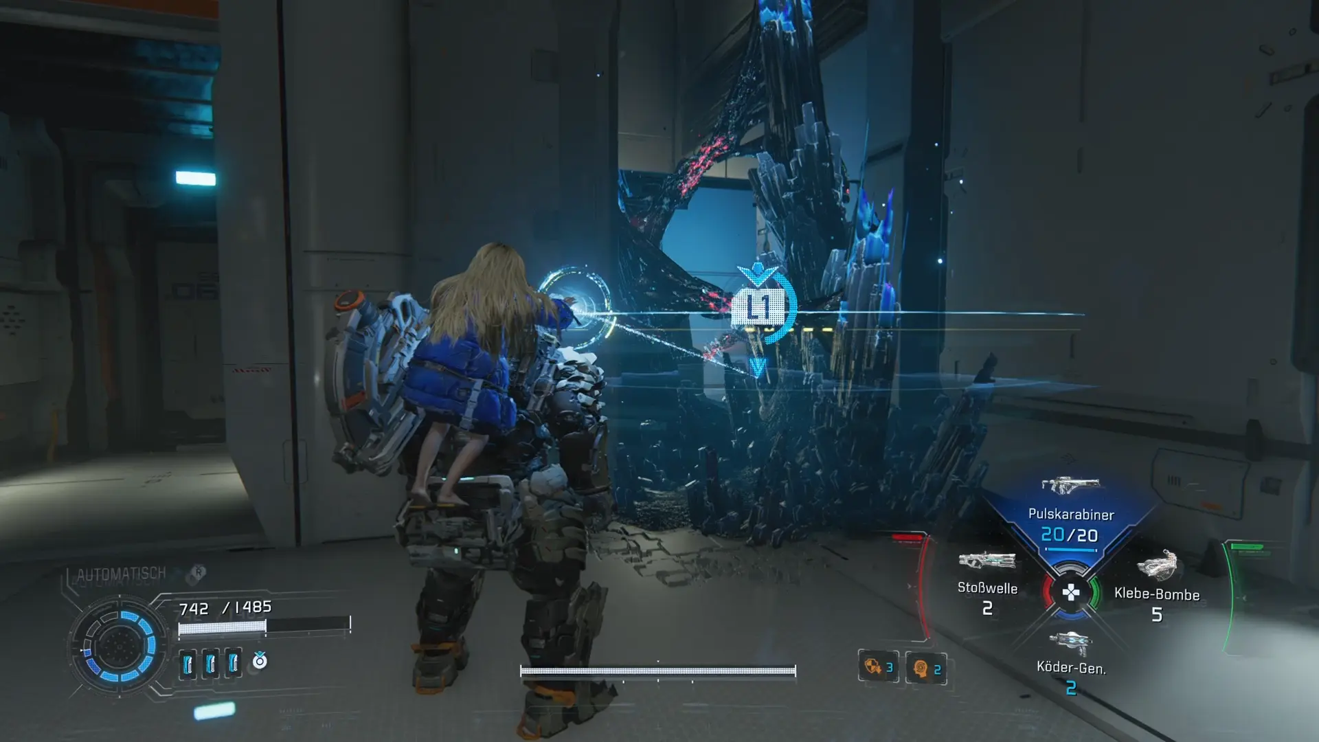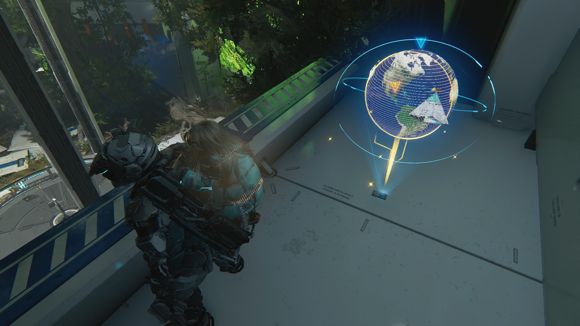 Blumen (Sektor 03, Terra-Dom, Eingang): Nachdem du im Rahmen der Hauptmission den Lim-Regulator der Pflanzenfabrik neu gestartet und im Bereich Terra-Dom, Eingang Teile des 3D-gedruckten Baums entfernt hast, kannst du dich neben der Konsole nach unten fallen lassen. Im Fall aktivierst du direkt die Schubdüsen, um auf der unteren Plattform mit dem REM zu landen.