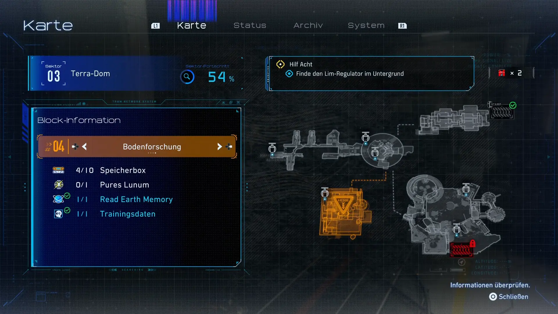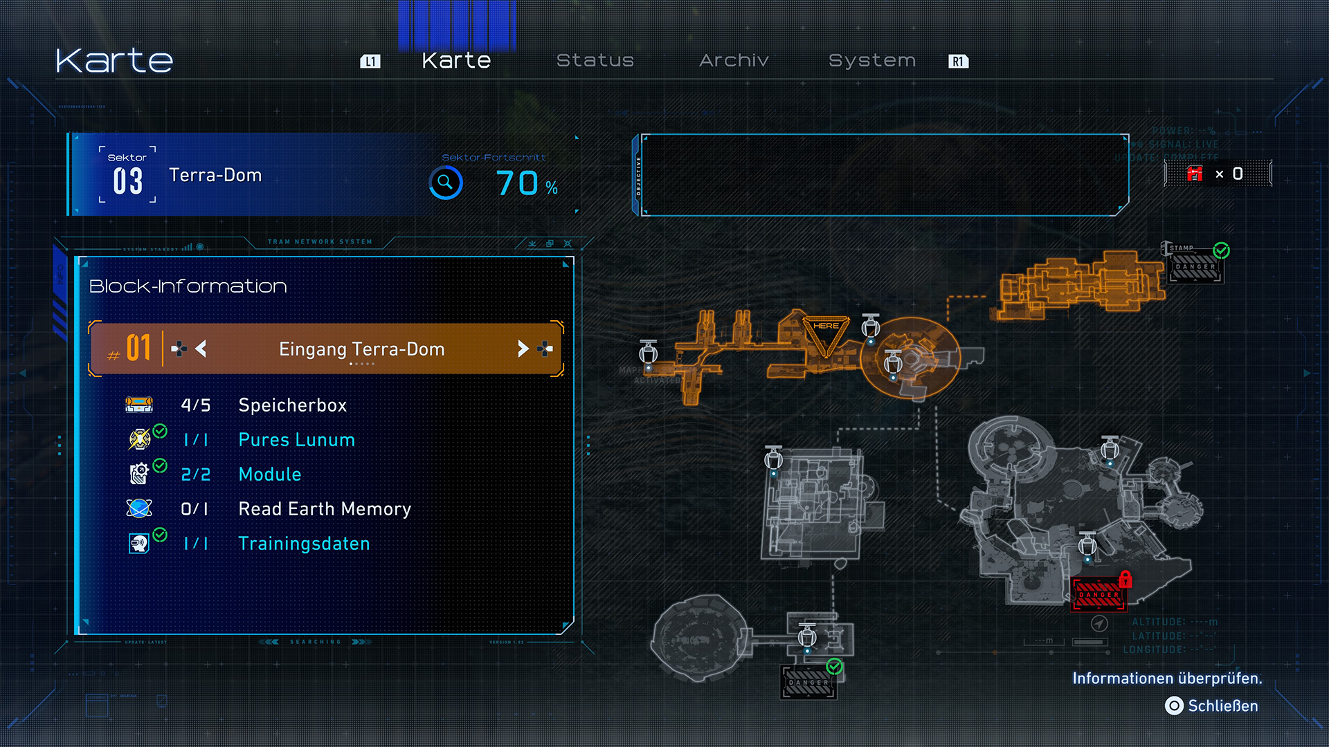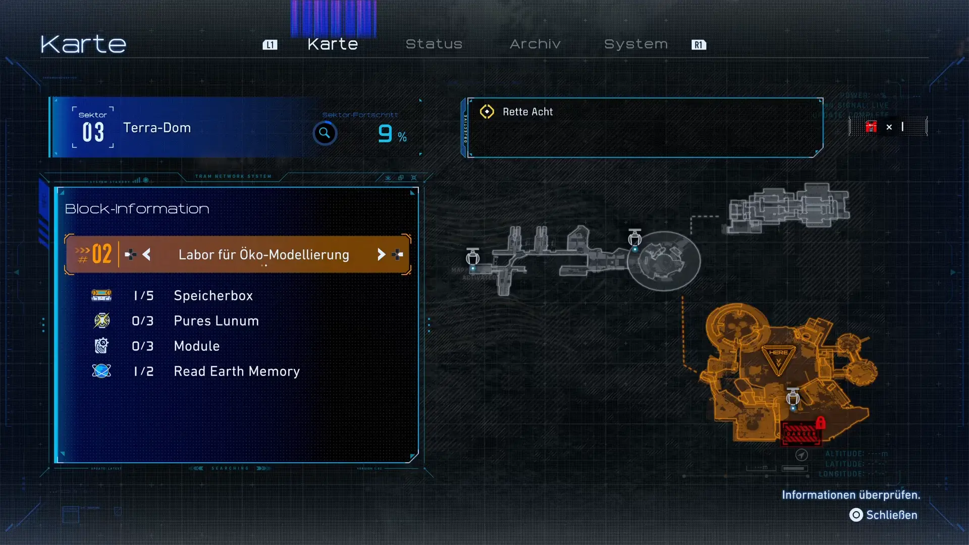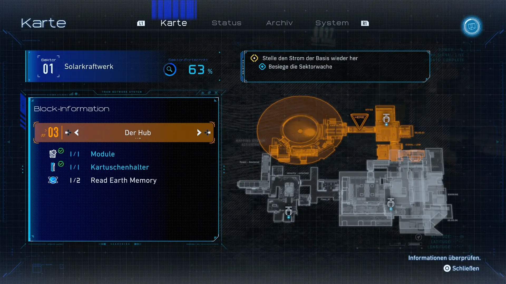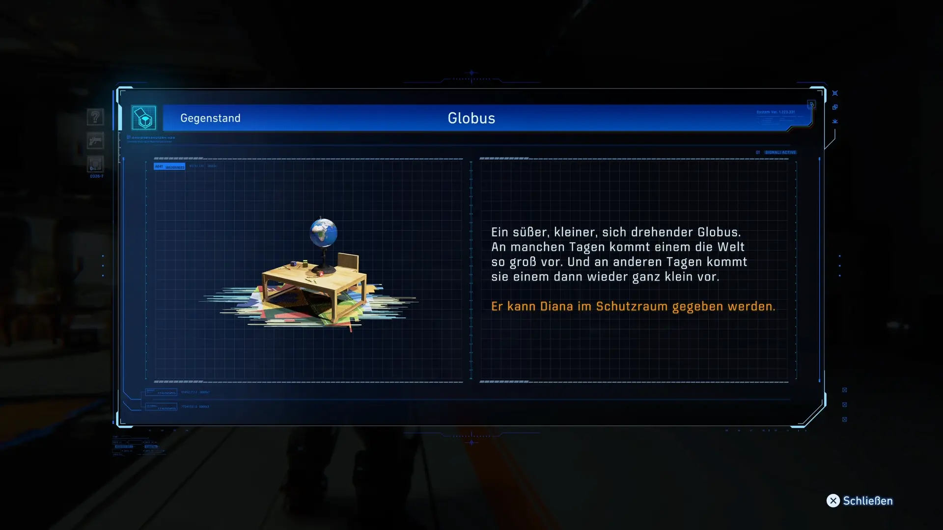 Globus (Sektor 01, Solarkraftwerk, Hauptkontrollraum, Lobby): Den Globus erhältst du automatisch kurz nach Beginn des Sektors in einer Zwischensequenz, du kannst ihn also gar nicht übersehen.
