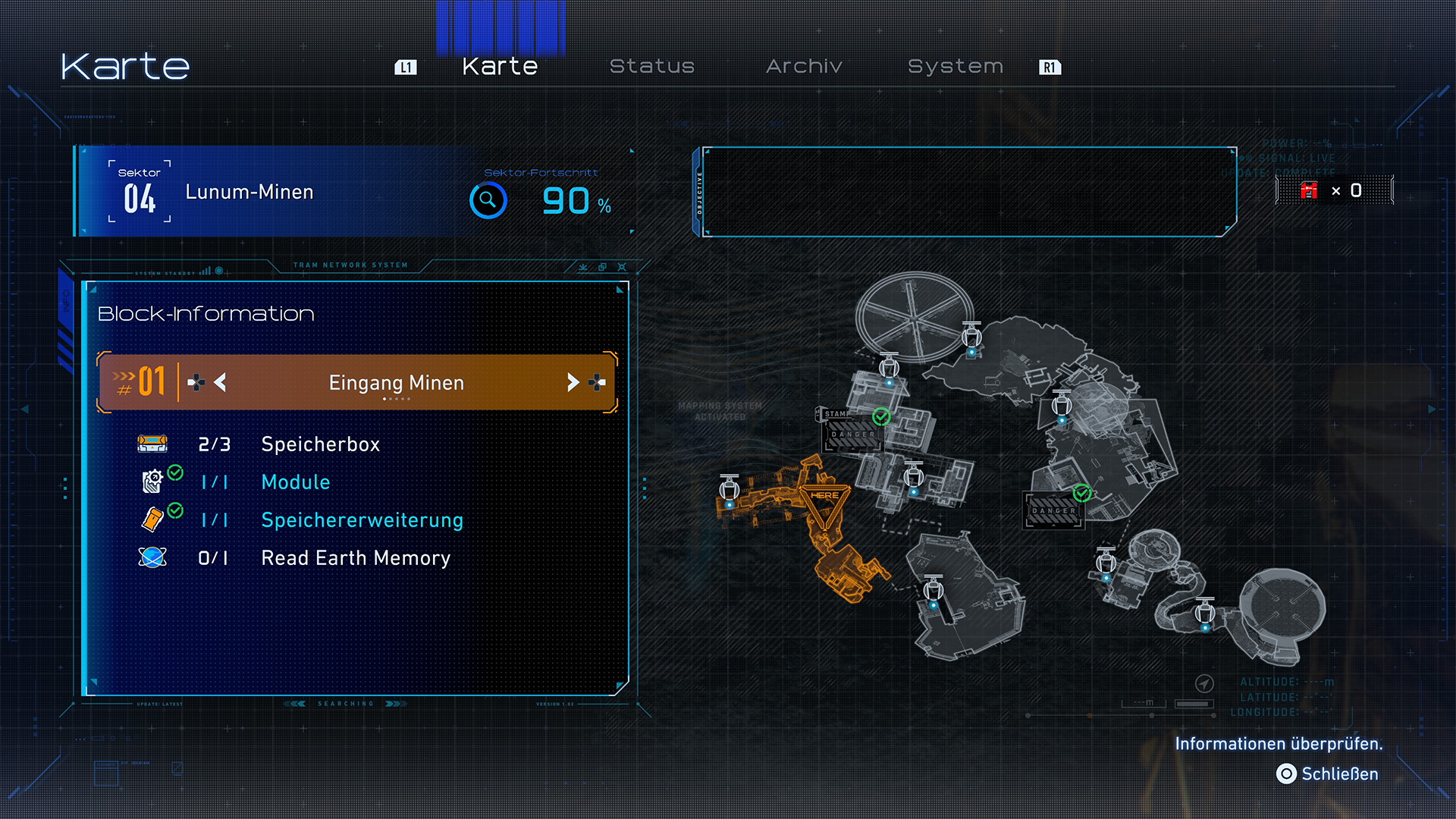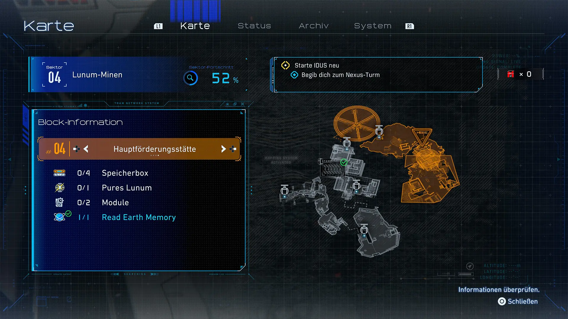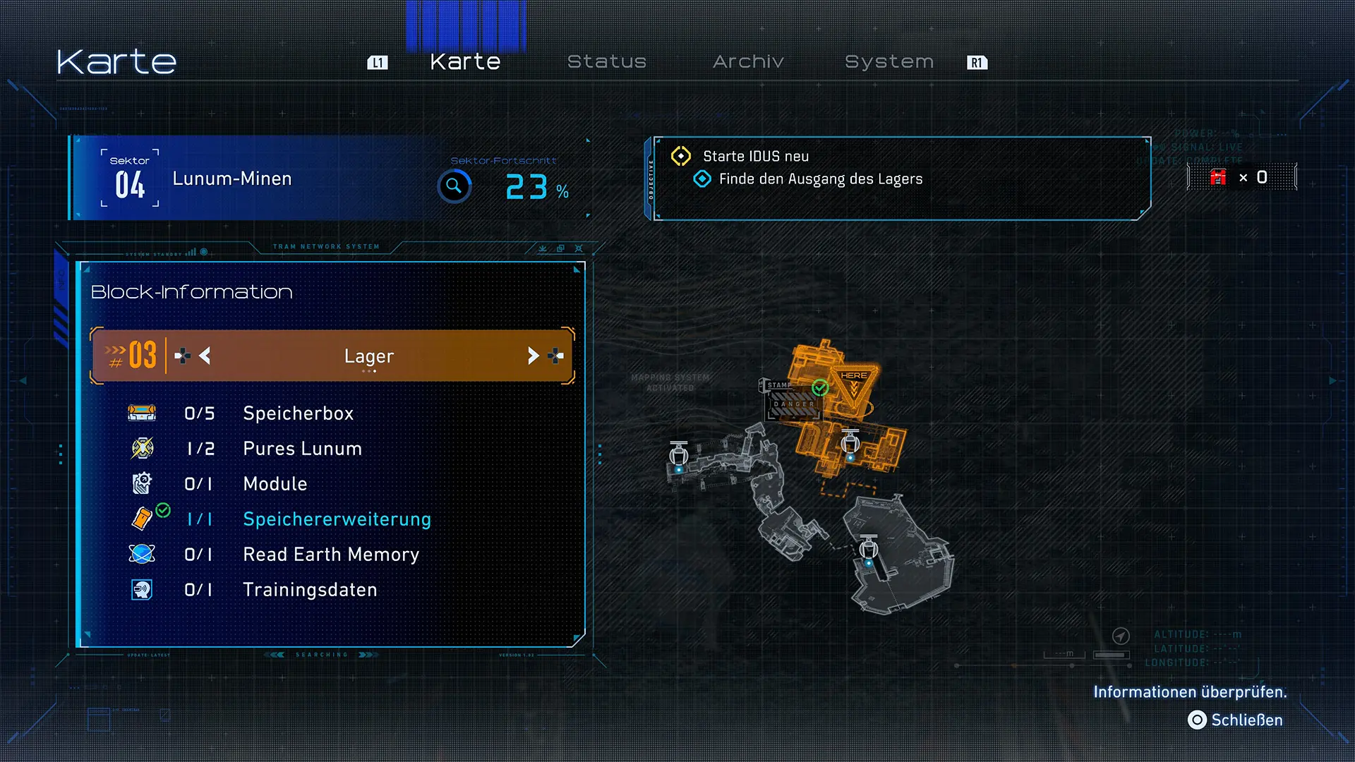 Welche REMs gibt es in Sektor 04? Die Lunum-Minen setzen stärker auf Sichtkontakt und Umgebungsrätsel, häufig rund um Plattformen und Container-Setups.