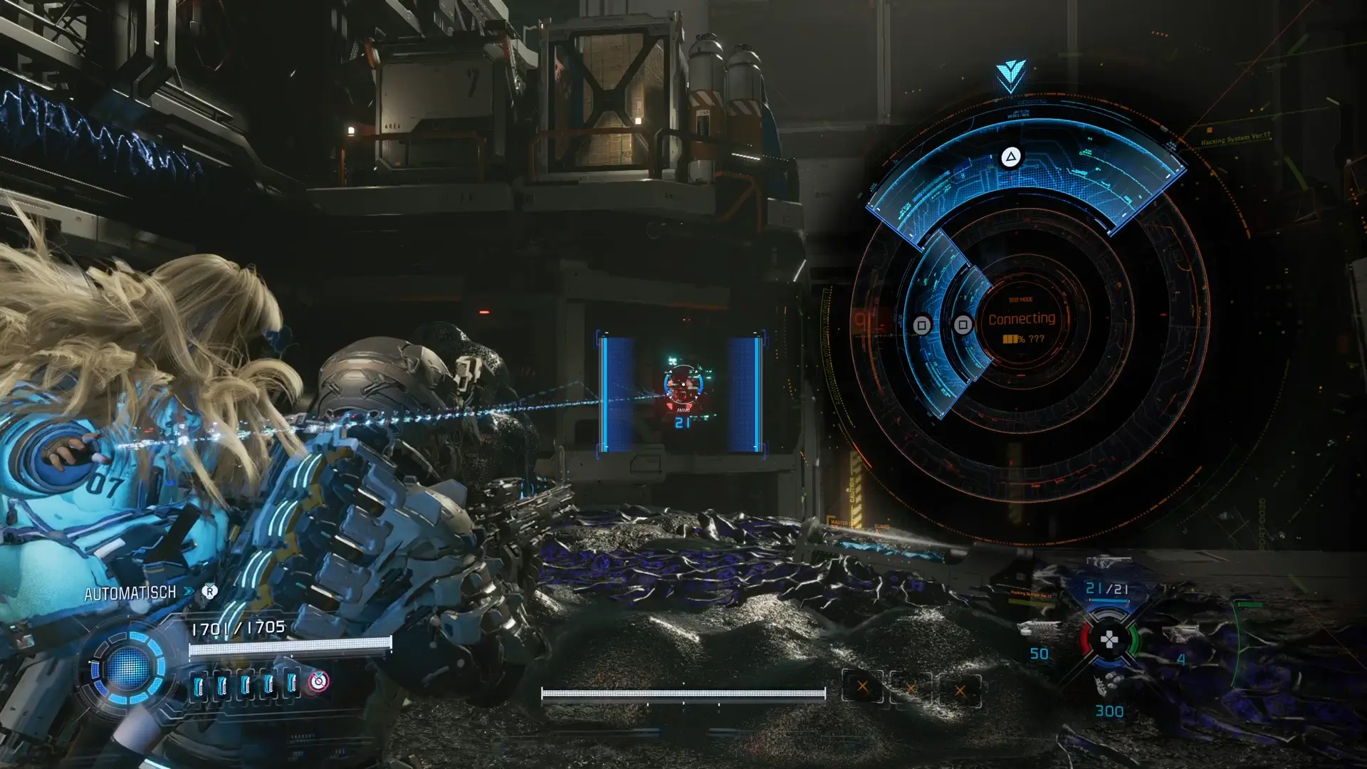 Unten angekommen deaktivierst du erneut einen Signalstörer und beseitigst die Gegner im Raum. Danach gehst du weiter in den nächsten Bereich und durch die rechte Tür. Dort triffst du auf eine gelbe Sicherheitszone, die du vorerst ignorieren solltest.