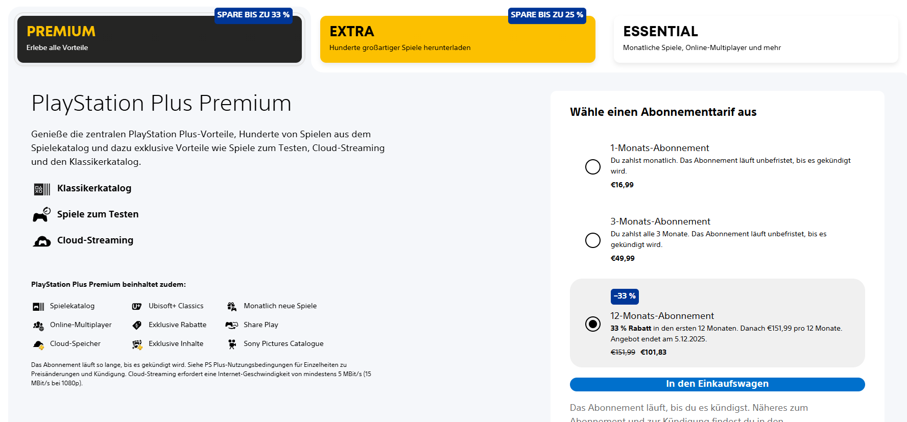 - PS Plus Premium: 101,83 € (anstatt 151,99 €)