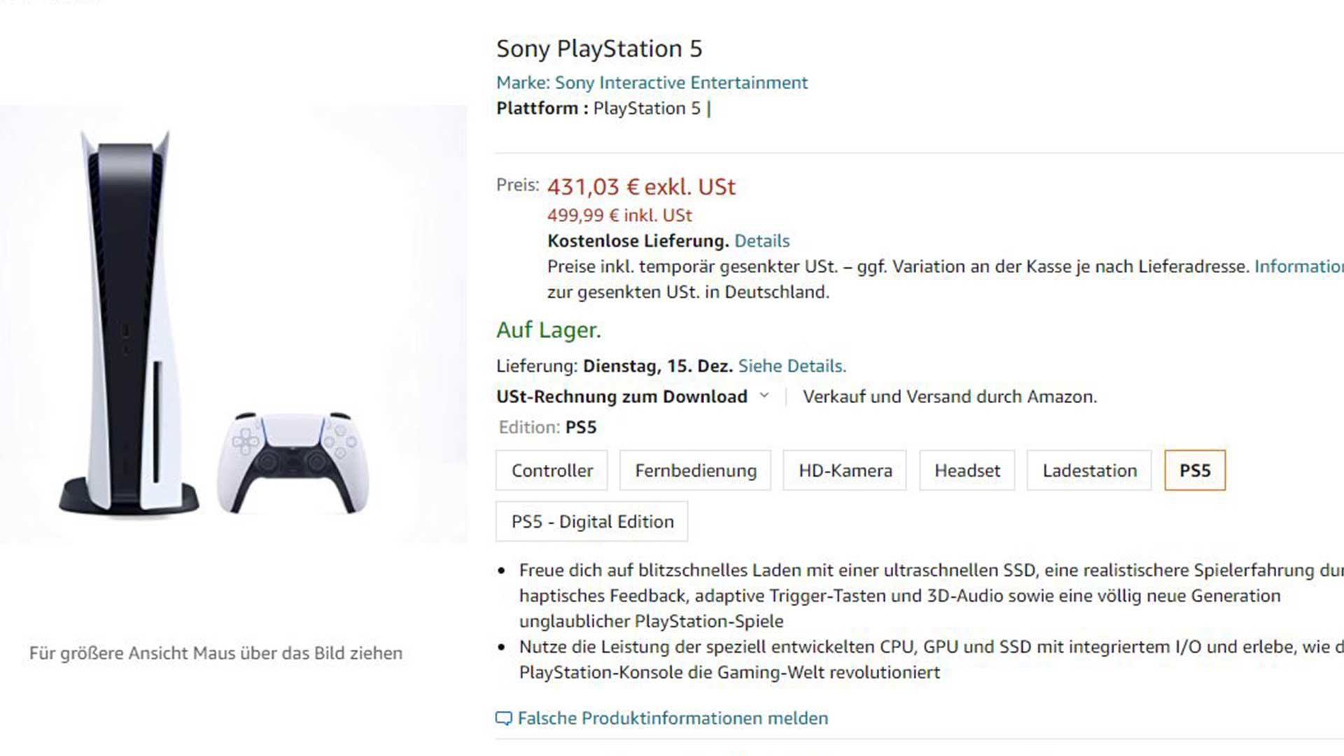 Originalmeldung: Der reguläre Verkauf startet heute am 19. November 2020 ab 13 Uhr, doch nun ploppen schon vereinzelt Bestände vor dieser Zeit auf. Schaut also ab sofort und vor allem ab 13 Uhr regelmäßig vorbei, um die PS5 auf keinen Fall zu verpassen.