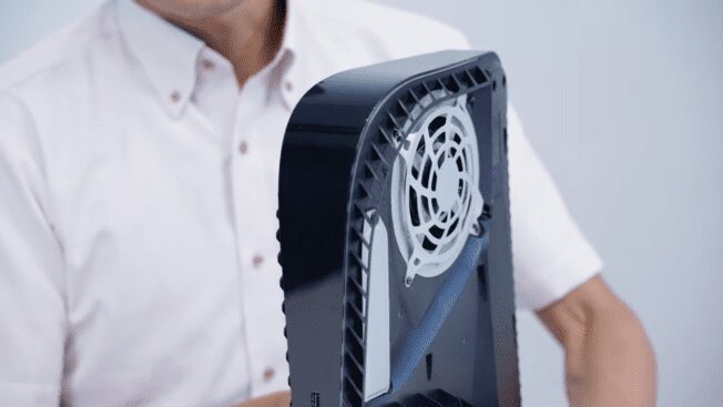 Der Lüfter ist innerhalb der PS5 auf der oberen Seite verbaut worden. Das Gute ist, dass er die Luft von beiden Seiten einzieht. Er ist also zu beiden Seiten offen sozusagen: