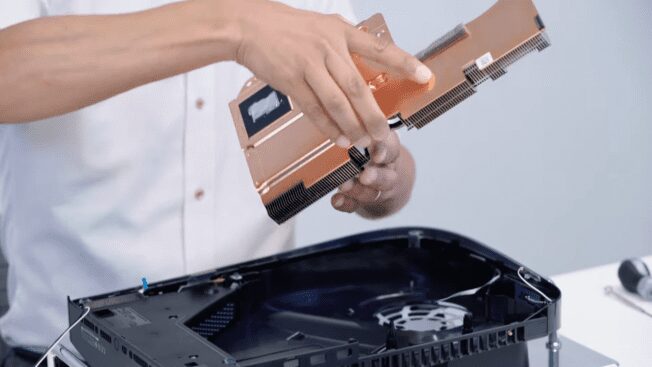 Wir sehen im Video also den integrierten Mechanismus, der die Konsole im Betrieb noch leiser macht. Laut Aussagen hätten sie mehrere Trial-and-Error-Prozesse gestartet, um die perfekte Lösung zu finden. Insgesamt haben sie über 2 Jahre gebraucht, um dieses Kühlsystem zu entwickeln.