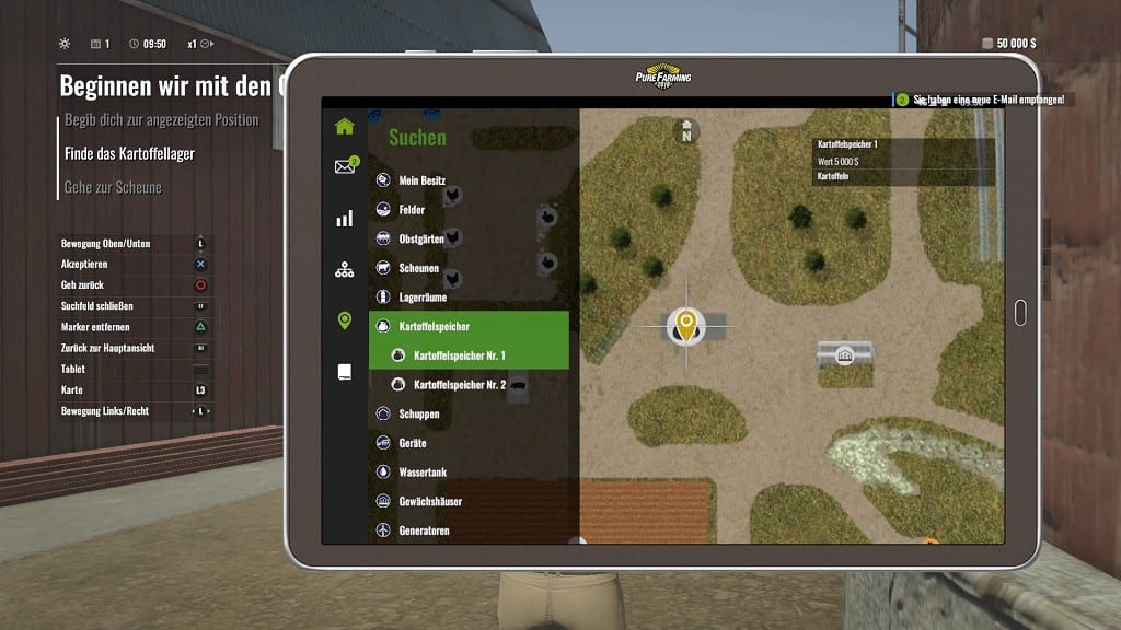 Das bereits erwähnte Tutorial im Anfänger-Modus erklärt ohne lange Dialoge die einzelnen Aufgaben eines Neufarmers in Form von E-Mails. Für jede Aktion erhaltet ihr eine separate Nachricht, die auf dem Tablet des Charakters angesehen werden kann. Schritt für Schritt erlangt ihr so das Wissen über alle Aufgabengebiete, samt der dazugehörigen Tastenkombination.