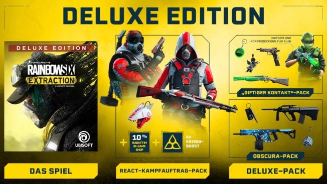 Die Deluxe Edition zu „Rainbow Six Extraction“ kostet 79,99 Euro bzw. 89,99 Euro. Diese Inhalte erhaltet ihr: