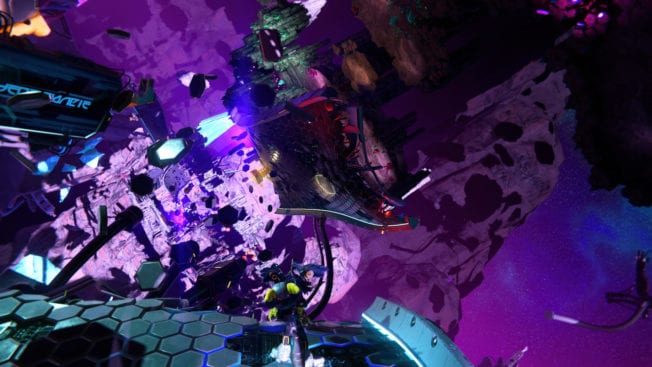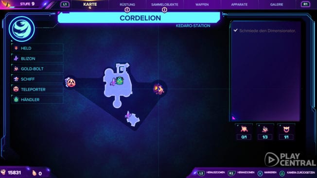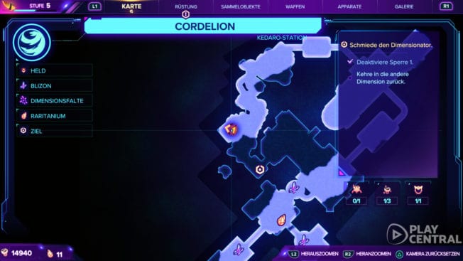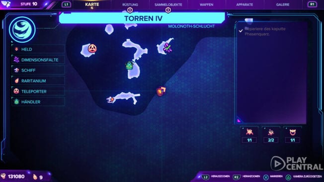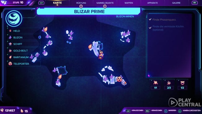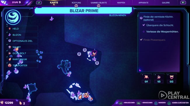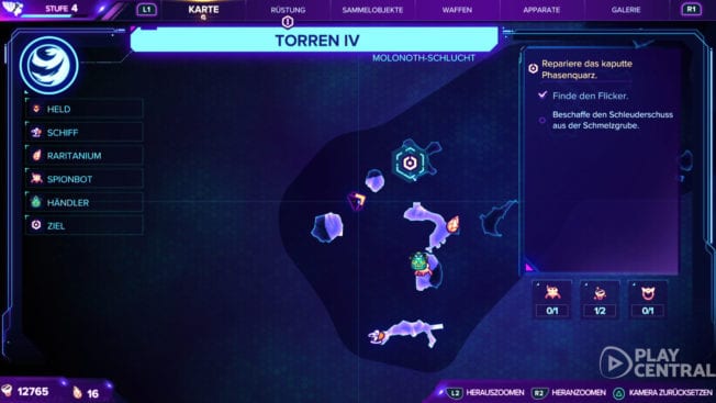 Vom Schiff aus könnt ihr euch direkt zur Bergbauzentrale teleportieren. Dort müsst ihr den Blizar-Kristall aktivieren, sodass ihr zur Trümmerdimension kommt. Lauft nach Norden, nehmt mit den Magnetstiefeln den Metallpfad und springt von Segment zu Segment, um schließlich zum Gold-Bolt zu kommen, der ziemlich in der Nähe zum Blizar-Kristall verweilt.