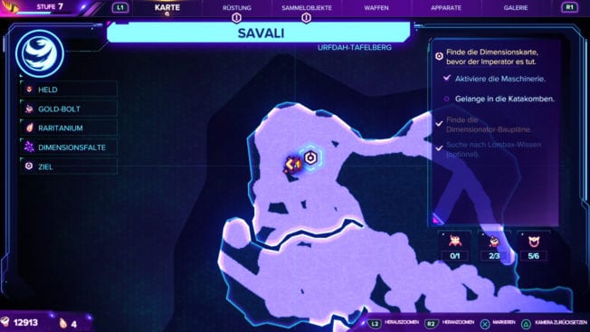 Dieser Gold-Bolt ist noch nicht beim ersten Besuch auf Savali zu erreichen, sondern erst kurz vor Ende der Story. Das Collectible befindet sich im Eingang der Katakomben, der sich später auftun wird. Sobald ihr in die Grube hinunterspringt, geht noch nicht zum großen Tor, sondern schaut euch kurz um. Im Raum gibt es einen Glitch-Anschluss. Schafft die Passage und der Gold-Bolt gehört euch.