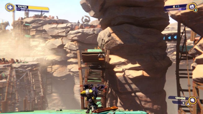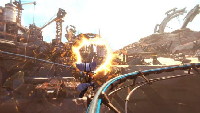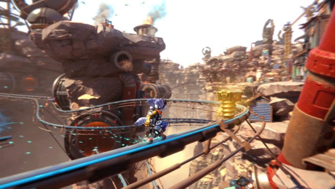 Während der Hauptstory müsst ihr den Schleuderschuss auf Torren IV beschaffen. Die Handlung führt euch zu einer Passage, die euch über Grind-Schienen führt. Während der Fahrt kommt ihr an einem Dimensionsriss vorbei (Rivet weist euch vorher darauf hin). Jetzt ist Timing gefragt: Visiert den Dimensionsriss an und zieht euch rechtzeitig dorthin. Dadurch kommt ihr auf eine Nebenstrecke mit dem Gold-Bolt.