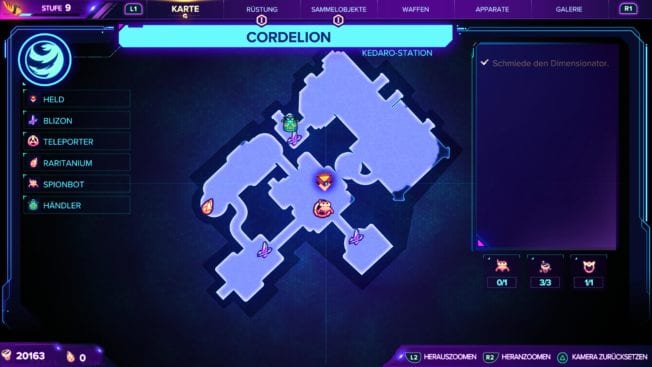 Vor dem Eingang zum Zurkie´s lauft rechts am Gebäude entlang. Dort ist eine Hochgeschwindigkeitsschleuder (sobald in der Story verfügbar), die euch direkt auf einen kleinen Planetentrümmer mit dem Spionbot befördert.