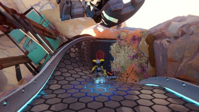 Auf einer der hochgelegenen Plattformen an der Wand lässt sich der Spaltstrahler an einem Dimensionsriss einsetzen und befördert euch direkt zum Spionbot.