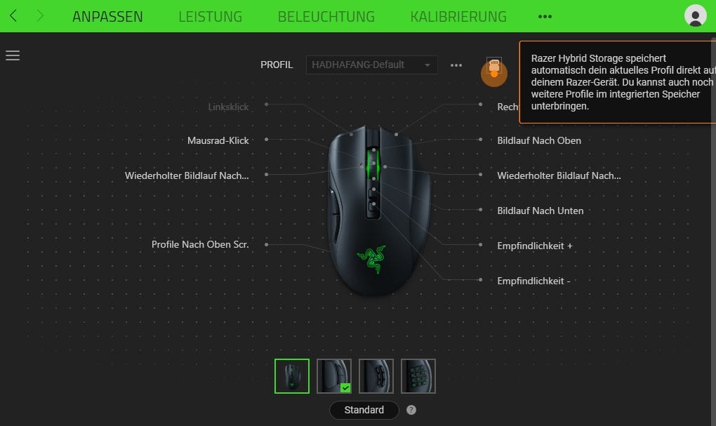 Egal ob Anpassungen an First-Person-Shooter, Battle Royale oder MMO: Es gibt so viele Möglichkeiten der Individualisierung, das einem fast der Kopf platzt. Während die klassischen 2-Tasten- und 12-Tasten-Module Trinity-Besitzern noch bekannt sein sollten, hat das neue 6-Tasten Modul das radiale 7-Tasten-Seitenteil ersetzt. Gerade Battle Royale-Spieler sollen hiermit auf ihre Kosten kommen. Die individuelle Belegung von Tasten, Makros sowie Einstellungen an DPI-Stufen, Energieverwaltung oder RGB können wir dabei kinderleicht und schnell via Razer Synapse vornehmen.