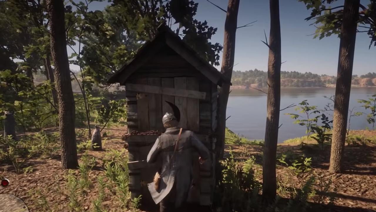 Von der Ortschaft Rhodes aus reist ihr weiter in Richtung Süden nach Braithwaite Manor. Im Südwesten des Gebietes findet ihr in der Nähe des Wassers einen kleinen einzelnen Punkt auf der Karte von Red Dead Redemption 2. Dort entdeckt ihr ein Klo-Häuschen, welches mit Ketten gesichert ist. Allerdings sollen die Ketten nicht euch daran hindern, euer Geschäft zu verrichten, wie ihr bald feststellen werdet.