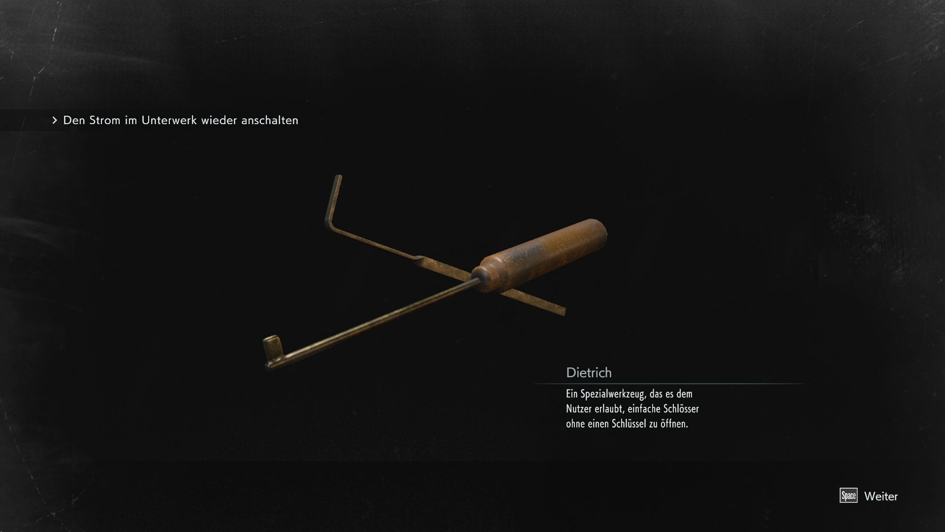 Darin befindet sich der Dietrich, der euch im weiteren Verlauf noch sehr gute Dienste leisten wird und immer wieder verwendet werden kann.
