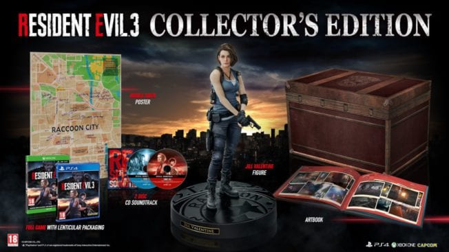 Die kommende Survival-Horror-Neuauflage „Resident Evil 3“ erhält eine Collector’s Edition, die mit zahlreichen Goodies daherkommt. Das Highlight stellt dabei die etwa 28 cm hohe Jill Valentine-Statue dar. Hier sind alle Inhalte der Collector’s Edition aufgelistet: