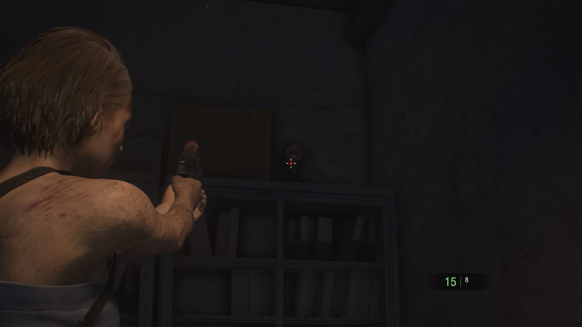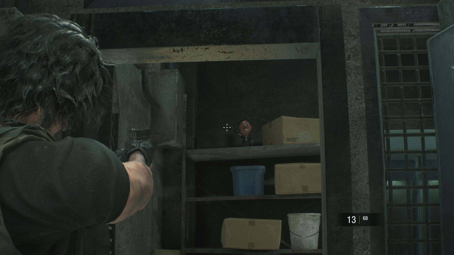 #18 Nachdem ihr euch im Lager durch eine Lücke gedrückt habt, befindet sich die Charlie-Puppe unmittelbar danach in einem Regal rechts.