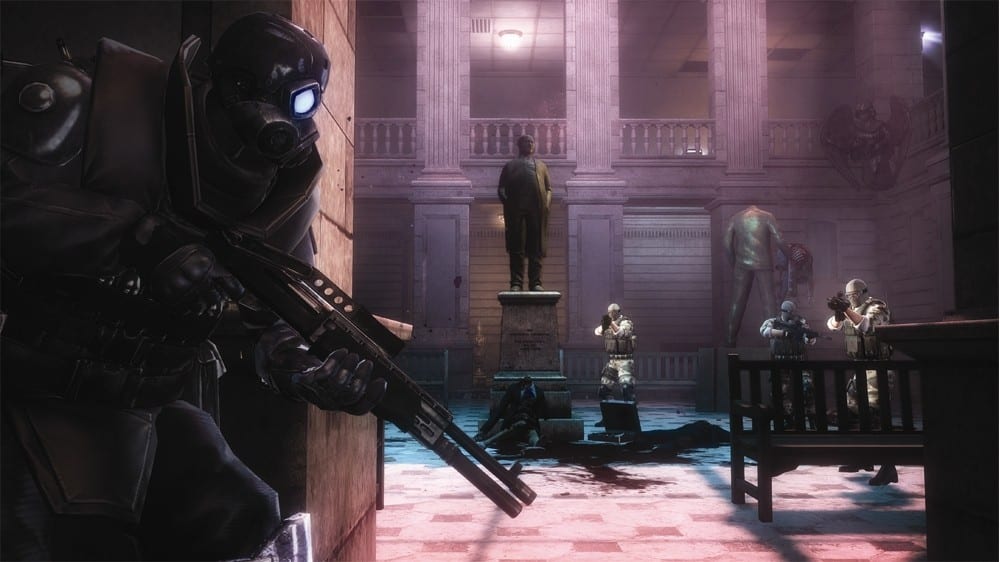 Die einzelnen Missionen laufen prinzipiell nach dem Schema ab, nach welchem ihr die geradlinig aufgebauten Umgebungen nach den auf der Minikarte markierten Zielpunkten abgrast. Hier und da wird dann per Aktionsbutton eine kontextsensitive Aktion ausgeführt, z.B. hackt ihr euch in ein Terminal oder vernichtet wichtige Dokumente, im Grunde lauft ihr immer von A nach B. Auf dem Weg dorthin stehen die infizierten Bewohner Raccoons im Weg und Truppen der US-Regierung zwischen euch und der Erfüllung eurer Mission. Trachten euch zunächst noch die normalen T-Virus-Zombies nach dem Leben, müsst ihr euch später euren Weg durch Hunter, Licker und Tyrants bahnen. Jeder Charakter kann ein Gewehr und eine Handfeuerwaffe mit sich führen, vor Beginn der Mission dürft ihr noch entscheiden mit welcher Bewaffnung und welcher Spezialfähigkeit ihr an den Start gehen wollt. Im laufenden Spiel sammelt ihr Munition, Granaten, Erste-Hilfe-Sprays und Antiviren ein, mit denen sich die Verwandlung in einen Zombie verhindern lässt. Sollte es doch so weit kommen, übernimmt die KI und ihr geht auf eure Teamkameraden los, selbst zu spielen ist in diesem Zustand leider nicht drin. Die Gegner bestechen in erster Linie durch ihre Überzahl, Infizierte greifen immer im blind losstürmenden Schwarm an. Wenn sie nicht gerade an euch vorbeilaufen, denn besonders die Crimson Heads laufen sehr gerne planlos durch die Gegend. Teamplay eurerseits wird nicht verlangt, Partner-Aktionen wie in Resident Evil 5 gibt es keine.