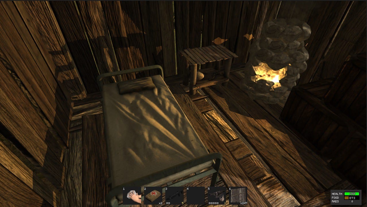 Natürlich ist selbst das Leben hinter Holzwänden nicht sicher, da diese zerstörbar sind. Es dauert zwar eine ganze Weile, aber eifrige Banditen können sich durch jede Wand durchhacken. Damit erhöht sich aber auch die Atmosphäre, da man nie weiß, ob man wirklich sicher ist. Gleiches gilt natürlich auch für uns. Immer wieder treffen wir andere Spieler und probieren unser Glück sie zu überrumpeln. Besonders spaßig wird es, Unvorsichtige im Schlaf zu erwischen. Immerhin ist PvP ja keine Einbahnstraße. Man tötet und wird getötet.