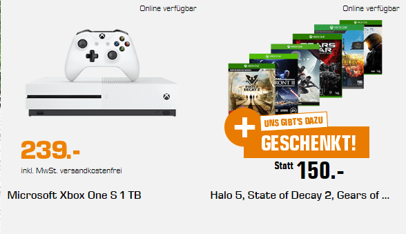 Xbox One S 1TB + sechs Gratisspiele: