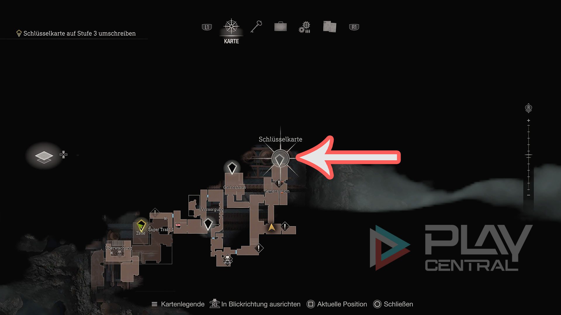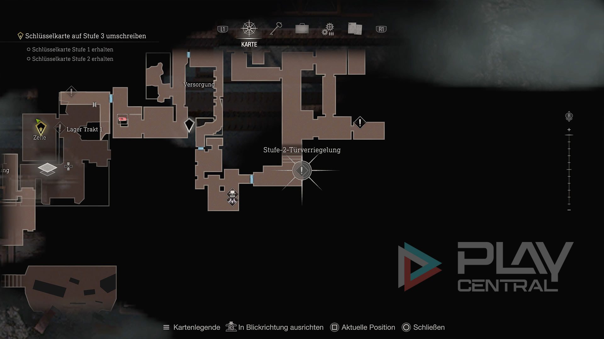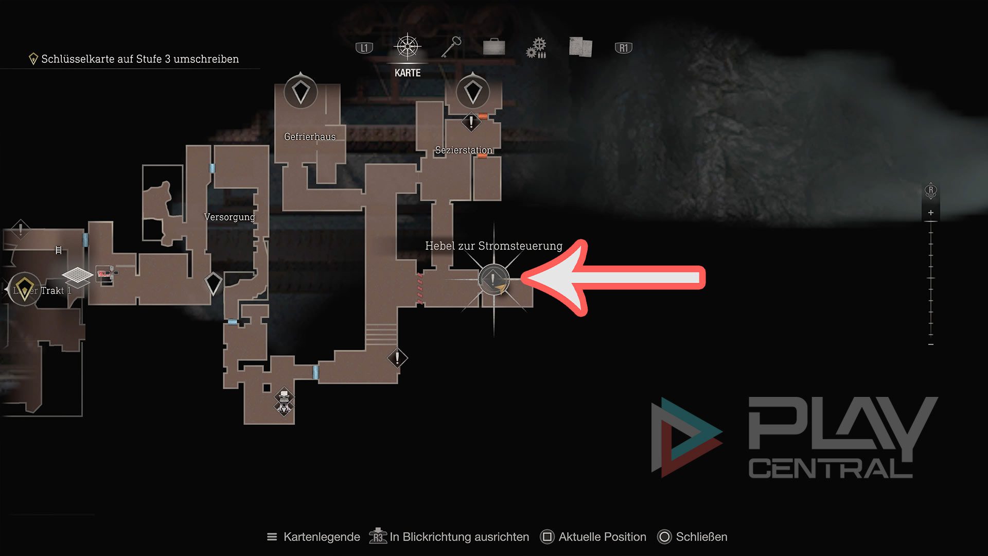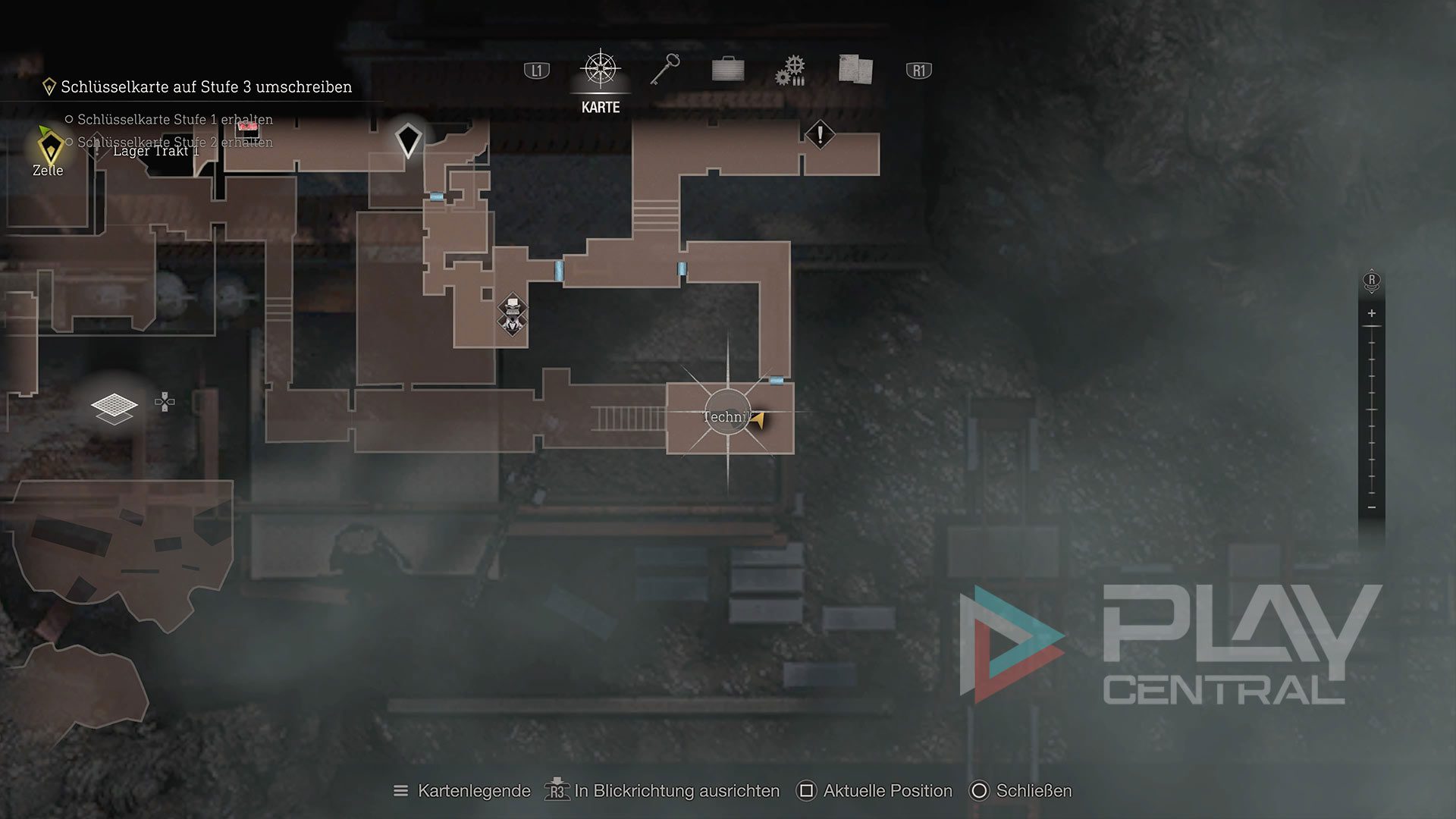 Das Überschreibungsterminal, um eurer Schlüsselkarte Stufe 3 (Keycard 3) zu verpassen, könnt ihr hier noch nicht nutzen, da Leon einen Schraubenschlüssel benötigt, um die Verkleidung des Terminals zu demontieren.