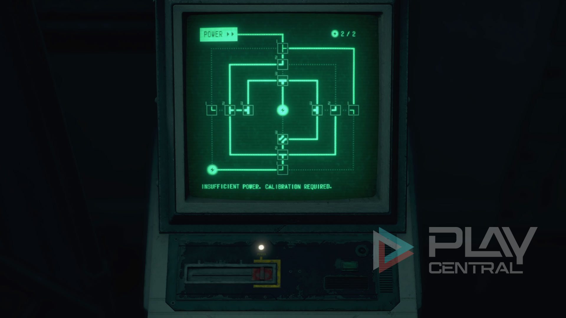 Der Zugang zur Sezierstation ist allerdings verschlossen. Nutzt das davor befindliche Terminal, um die Stromzufuhr für die Tür zu aktivieren. Hier gilt es ein kleines Rätsel zu lösen und den Strom zu beiden Knoten zu führen. Die Lösung könnt ihr dem folgenden Bild entnehmen.