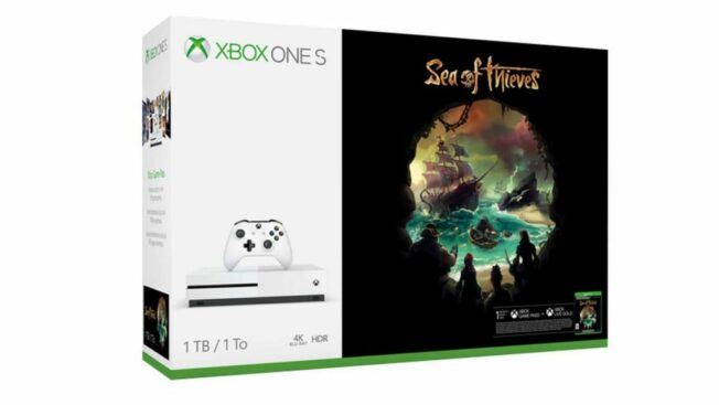 Neben einer Xbox One S, die eine Festplatte mit 1 TB Festplattenspeicher enthält, einem Xbox Wireless Controller und dem 4K Ultra HD Blu-ray-Player enthält die Box einen Downloadcode für den Exklusivtitel Sea of Thieves.