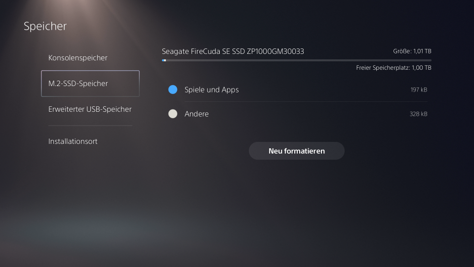 Die FireCuda 530 steht nun als M.2-Speicher zur Verfügung und ihr könnt mit dem Verschieben von Spielen aus dem internen Speicher beginnen. Habt ihr euch für ein Modell mit 2TB oder 4TB entschieden, solltet ihr im System einstellen, dass neue PS5-Games automatisch auch in den M.2-Speicher installiert werden. So erspart ihr euch einen Verschiebevorgang.