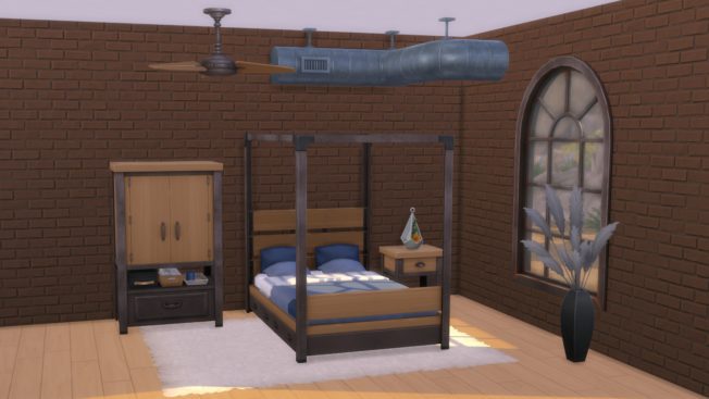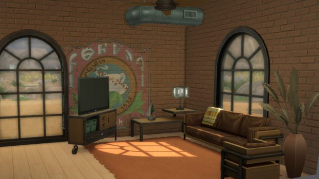 Im Baumodus gibt es insgesamt drei neue Objekte: 2 neue Türen und ein neues Fenster. Zusätzliche Bodenbeläge oder Tapeten sind nicht dabei. Die obligatorische Ziegelsteinwand ist aber bereits im Basisspiel von „Sims 4“ enthalten.
