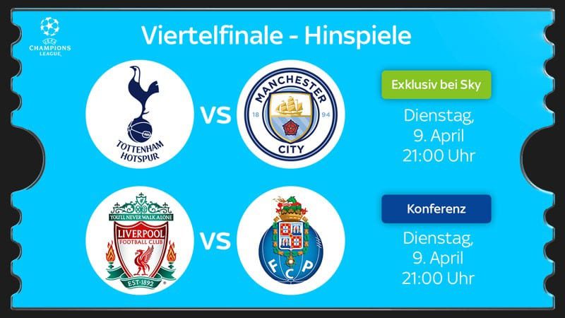 - Dienstag 09.04.2019, 21 Uhr: Tottenham Hotspurs – Manchester City