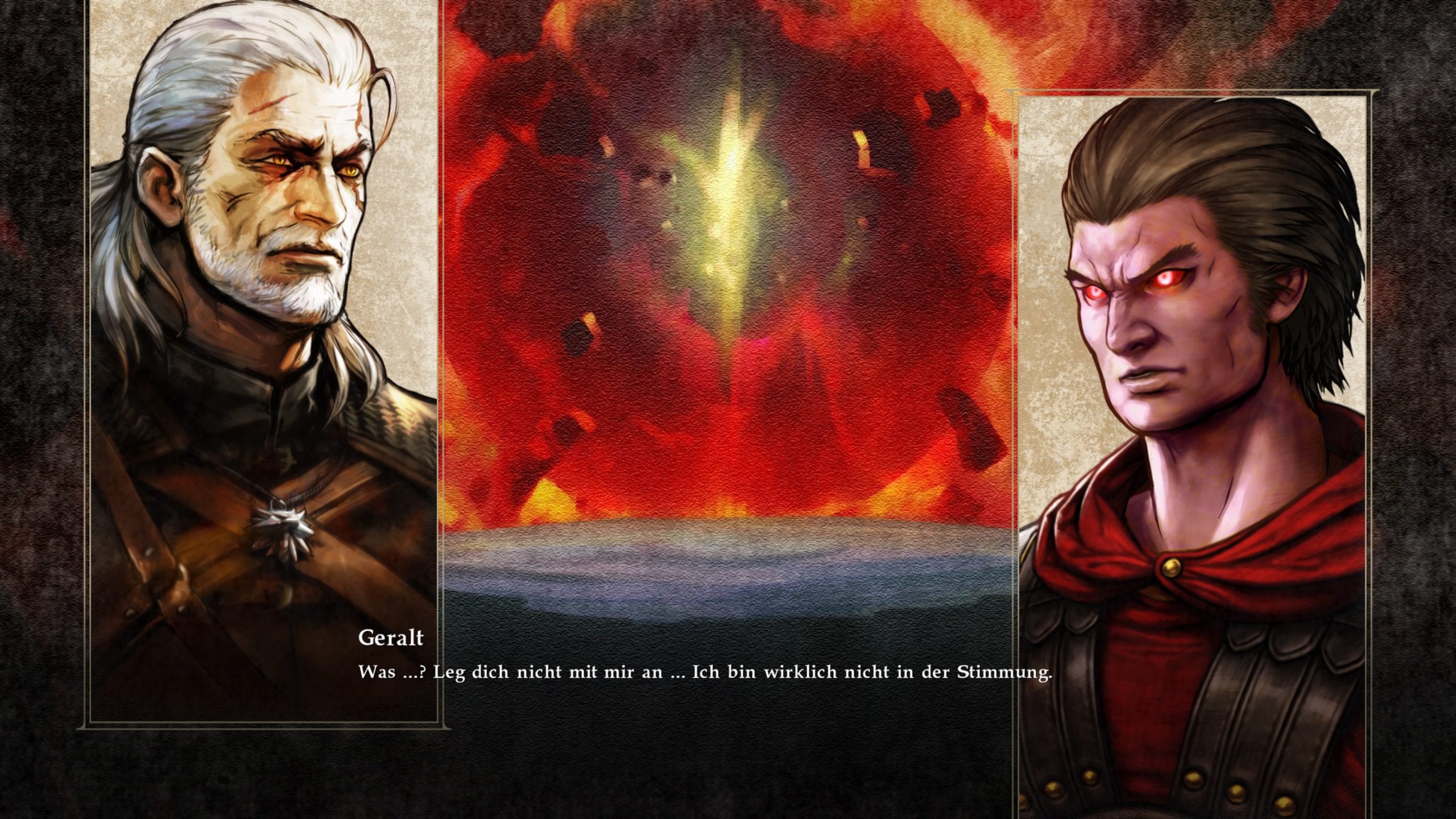 Während die Hauptgeschichte auch mit Zwischensequenzen in Spielgrafik inszeniert ist, wird die Handlung in den Einzelepisoden in Form von Artwork-Standbildern und wahlweise auf Englisch oder Japanisch vertonten Textboxen präsentiert. Verschiedene Portraits verbildlichen die Stimmung eures Charakters, besonders gefallen hat uns Geralts leicht genervter Gesichtsausdruck, mit dem er das Stranden in einer fremden Welt und die Begegnungen mit Soul Edges Lakaien zur Kenntnis nimmt. Durch seinen passiv-agressiven Grundton, zusammen mit Hintergrundmusik und einer Kampfarena aus The Witcher, hat Project Soul den Hexer sehr gut getroffen. Überhaupt kann nicht oft genug erwähnt werden, wie gut sich Geralt in den Rest des Casts integriert.