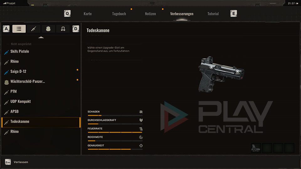 Ihr könnt Pistolen bei Händlern erwerben, aus Verstecken und von besiegten Gegnern plündern oder zufällig in der Zone finden – abhängig von ihrer Seltenheit. Ein großer Vorteil von Pistolen ist die Möglichkeit, sie mit verschiedenen Aufsätzen auszustatten. Ihr könnt beispielsweise ein Visier anbringen, um die Reichweite zu erhöhen, ein erweitertes Magazin für mehr Munition hinzufügen oder einen Schalldämpfer einsetzen, um Geräusche und Mündungsfeuer zu reduzieren. So lassen sich Pistolen vielseitig verbessern.