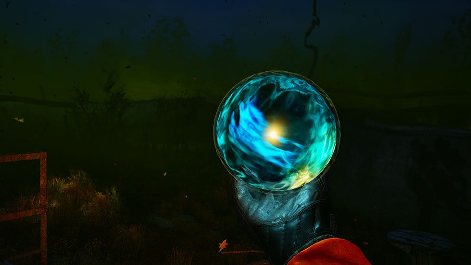 Der Einstieg in die Artefaktsuche: Dieser Detektor blinkt blau und piepst schneller, je näher ihr euch am Artefakt befindet. Bei dem Echo-Detektor handelt es sich um das einfachste Modell in Stalker 2. Er zeigt lediglich an, ob ein Artefakt in der Nähe ist, liefert aber keine weiteren Details wie Richtung oder Distanz. Das macht ihn kaum besser als einen Bolzenwurf, spart aber immerhin Zeit, wenn das Feld leer ist.
